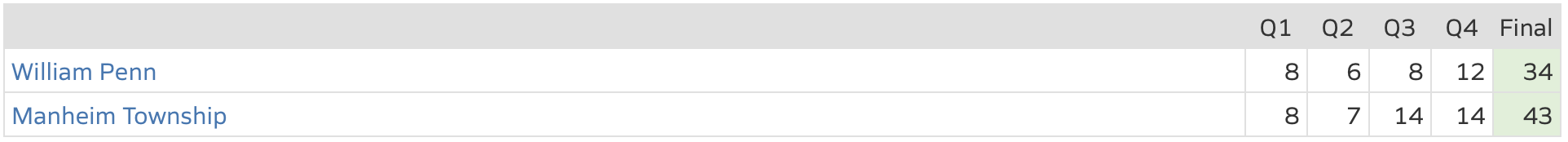 William Penn now has a losing record of 1-2. As for Manheim Township, they now have a winning record of 2-1.