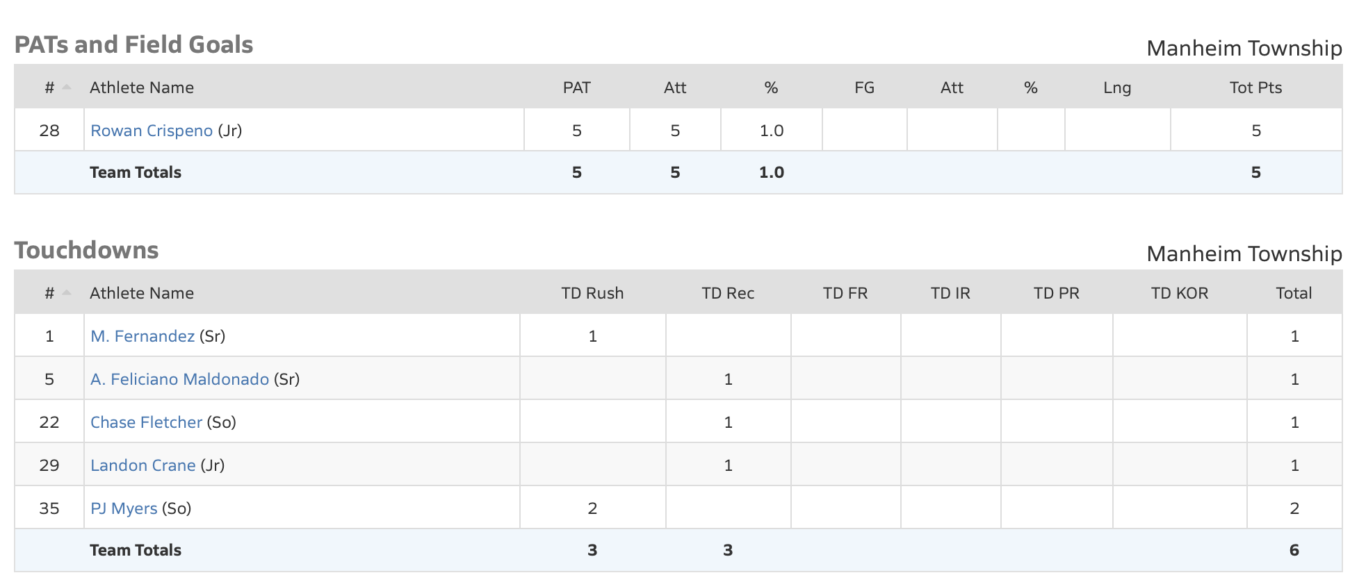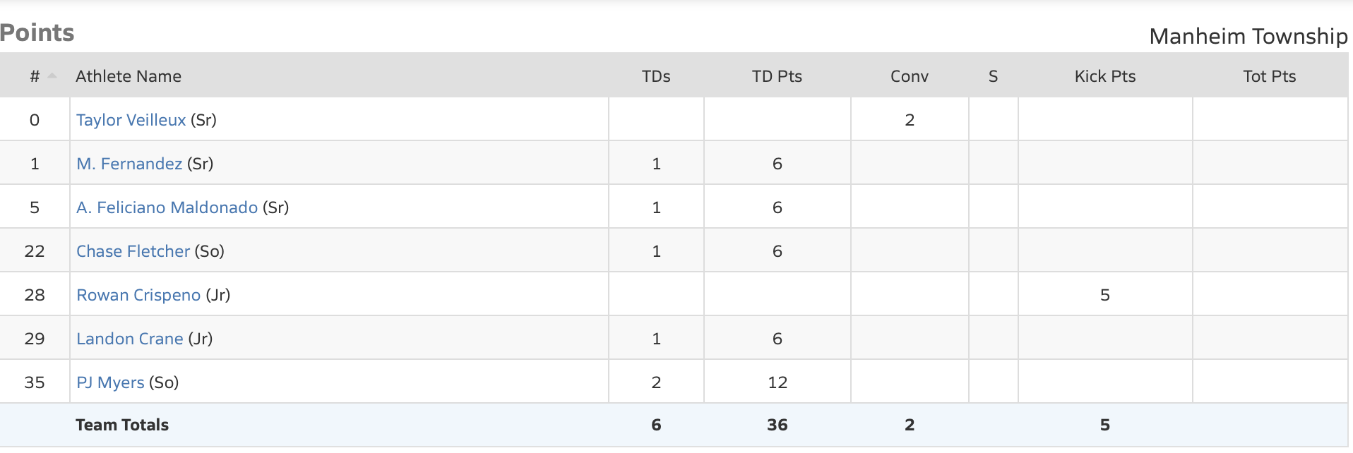 Multiple players turned in solid performances to lead Manheim Township to victory, but perhaps none more so than Jack Kenneff, who threw for 233 yards and three TDs while completing 74.2% of his passes. Those three passing touchdowns gave Kenneff a new career-high. PJ Myers helped Kenneff out on the ground, rushing for 77 yards and a pair of touchdowns on only ten carries.