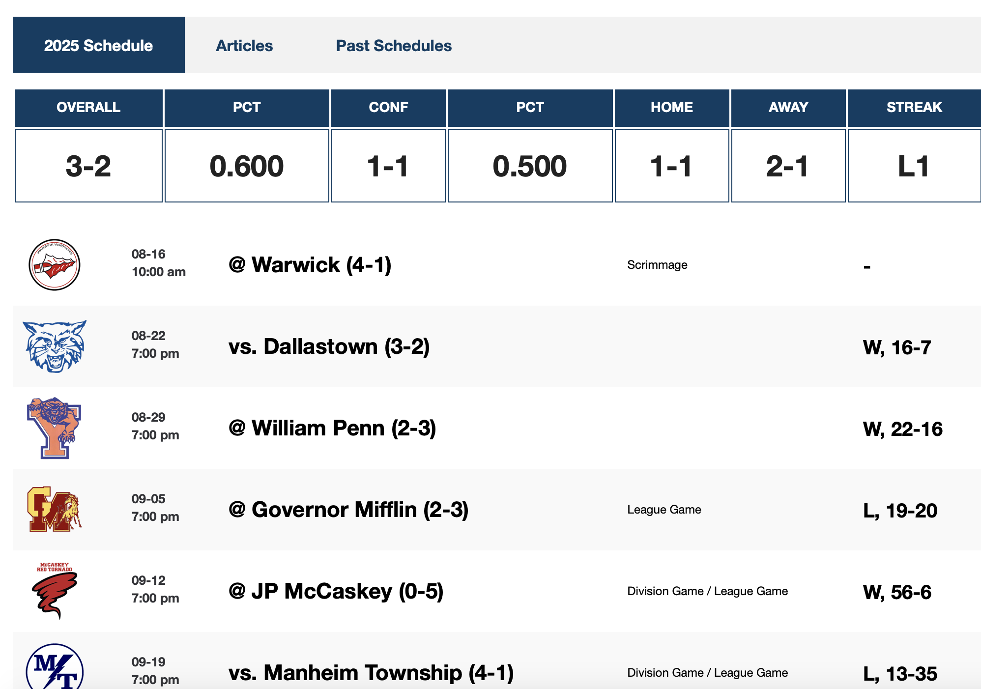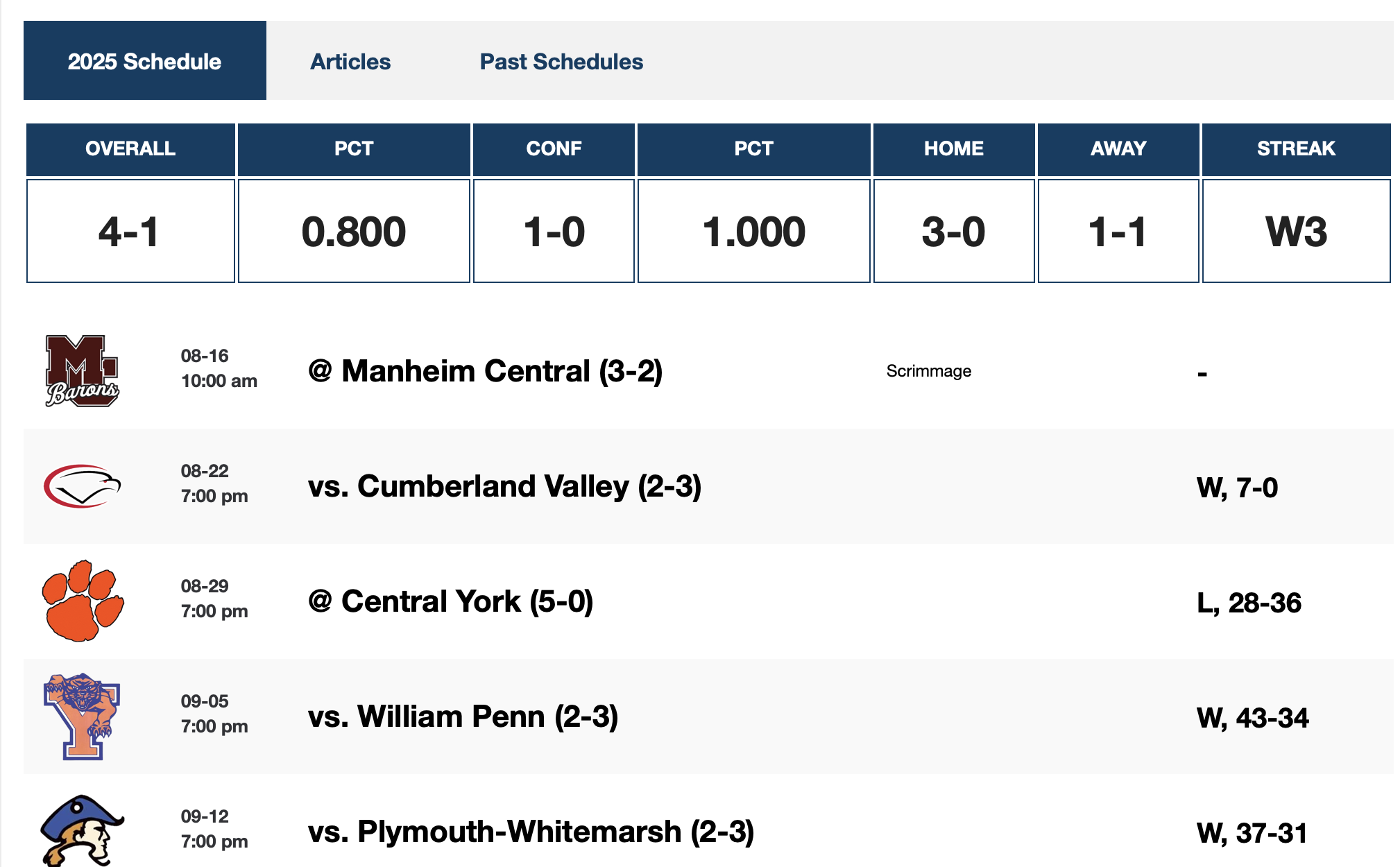 The Black Knights (2-2) hosted the Blue Streaks of Manheim Township (3-1).