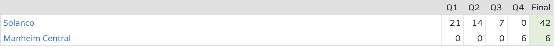 Solanco won the last time they faced Manheim Central and things went their way on Friday too. The Golden Mules claimed a resounding 42-6 victory over the Barons. The Golden Mules might be getting used to big wins seeing as the team has won six matchups by 28 points or more this season.