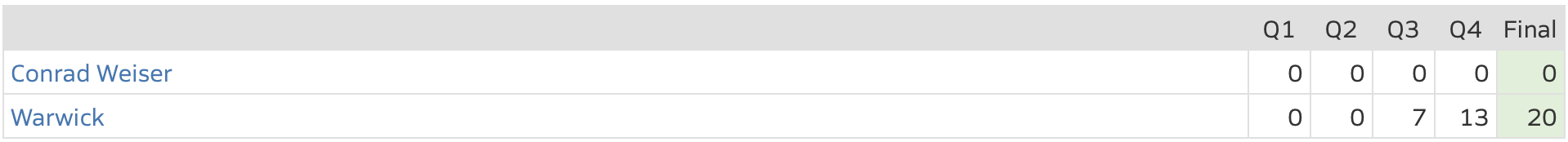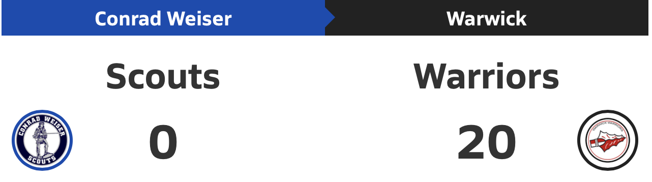 Conrad Weiser’s game on Friday was all tied up 0-0 at the half, but sadly for them it didn’t stay that way. They lost 20-0 to the Warwick Warriors. The matchup marked the first time this season in which the Scouts were not able to get on the board.