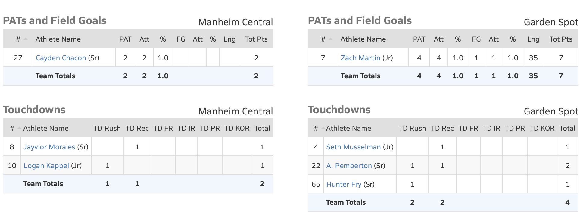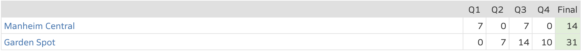 Week 9 Football: Garden Spot defeated Manheim Central 31-14. The win came in a Section 3 matchup where Garden Spot outscored Manheim Central 24-7 in the second half.