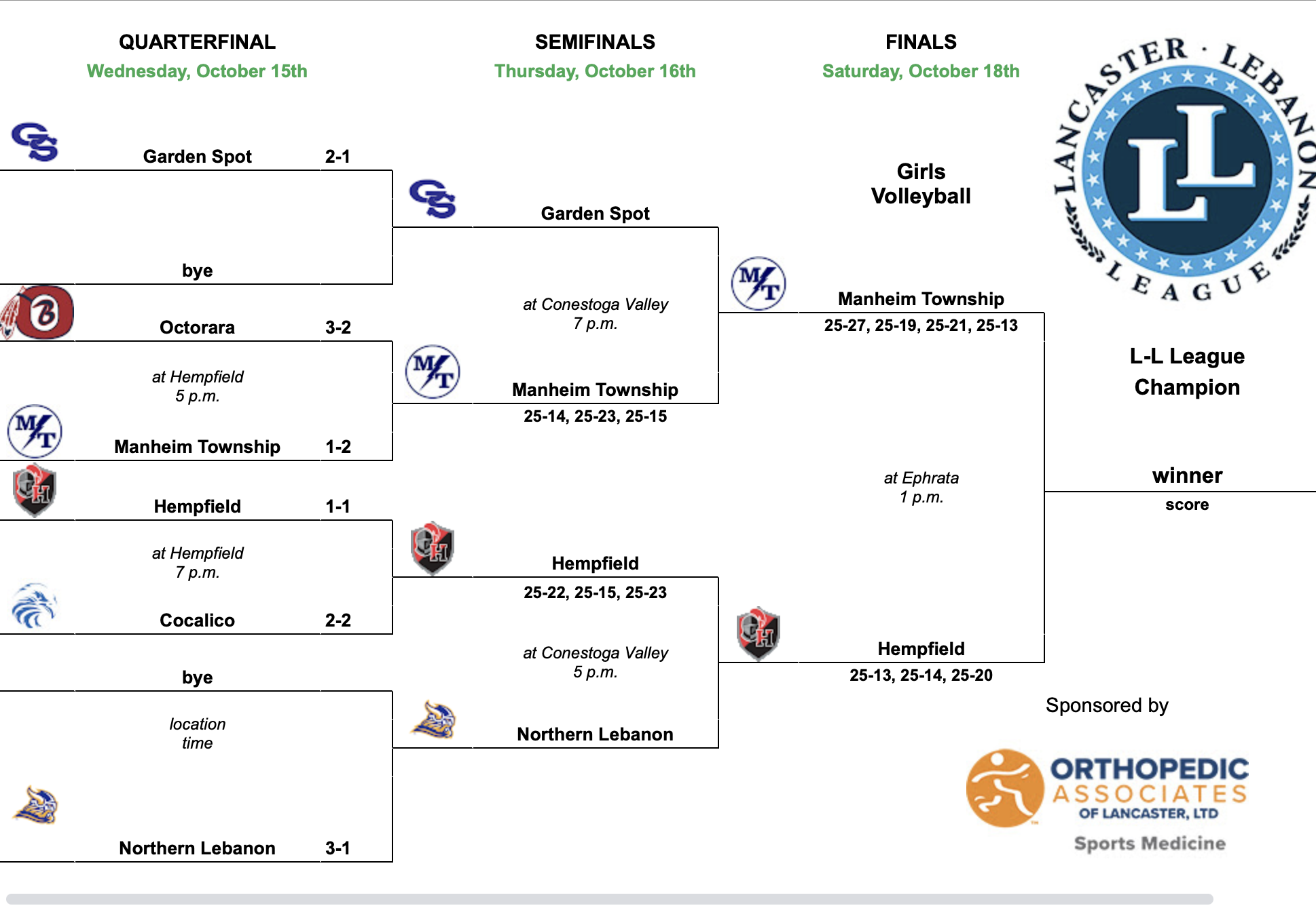 The Hempfield Lady Kights have won their fourth straight Lancaster-Lebanon League girls volleyball championship after a 3-0 sweep of Manheim Township Saturday in Ephrata.
