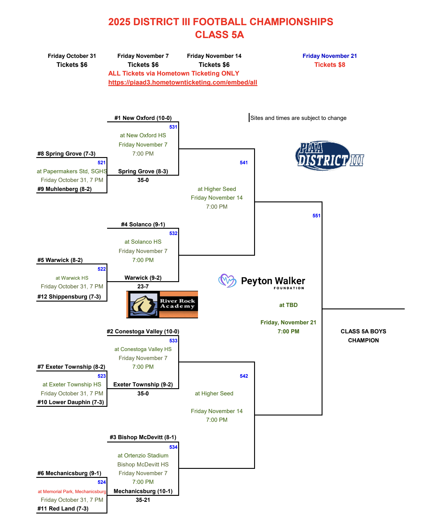 Next Week… 5A Quarterfinals: #5 Warwick (9-2) vs. #4 Solanco (9-1) on November 7 at Solanco HS! {Golden Mules beat the Warriors 35-7 in Week 4}