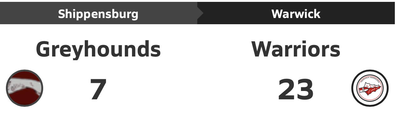 District 3 Football Playoffs: #5 seeded Warwick ran past #12 Shippensburg 23-7 to advance to the Quarterfinals of the 5A bracket! RB Heath Schnipke ran 20 times for 112 yards & 2 TDS with 2 catches for 50 yards.