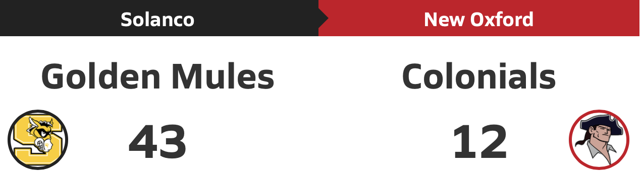 The Solanco Mules have defeated the New Oxford Colonials 43-12.
