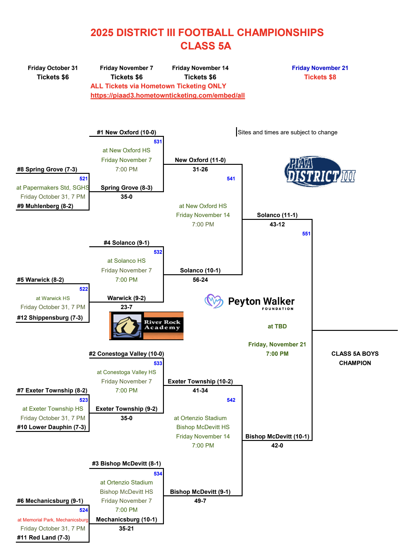 New Oxford (11-1) struck first when Alex Brown capped the opening drive with a 3-yard touchdown run for a 6-0 lead. Solanco answered late in the first quarter with Garcia’s first score, then surged ahead in the second. After Garcia’s second touchdown made it 14-6, the Colonials briefly closed the gap on Kam Lamke’s 2-yard run, but Garcia’s third TD just before halftime pushed Solanco ahead 21-12.