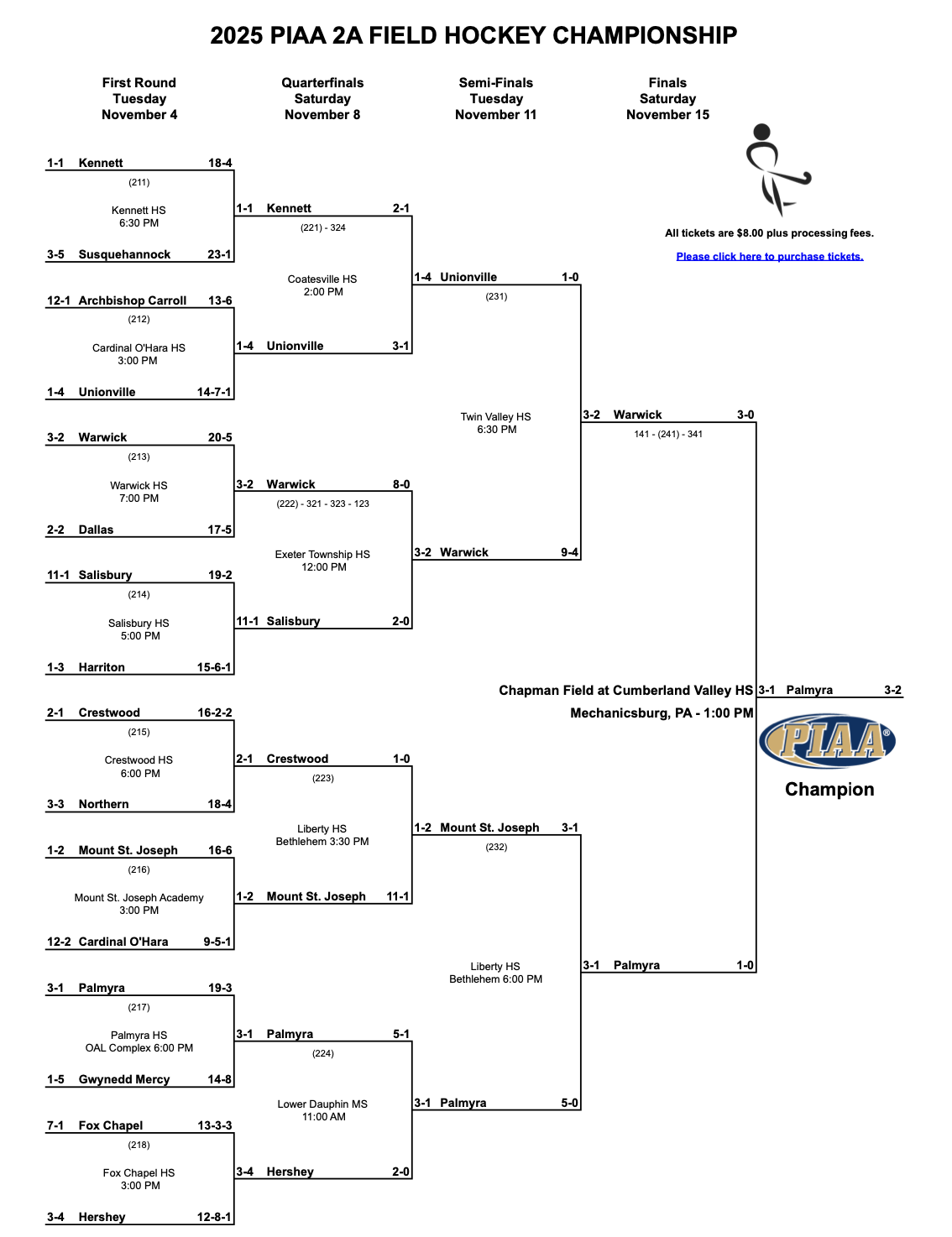 Palmyra, the District 3 Class 2A champions and runner-up Warwick met for the second time in two weeks after the Cougars shutout the Warriors 5-0 on Nov. 1 in the D3 title clash.