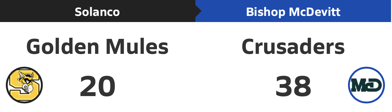 The Bishop McDevitt Crusaders won their 19th District 3 football championship over the Mules of Solano at Warwick High School in dominating fashion tonight.