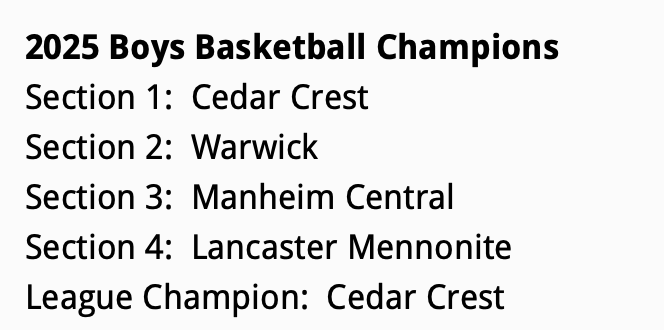 Last season’s Section winners and L-L League Champions: