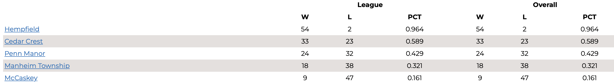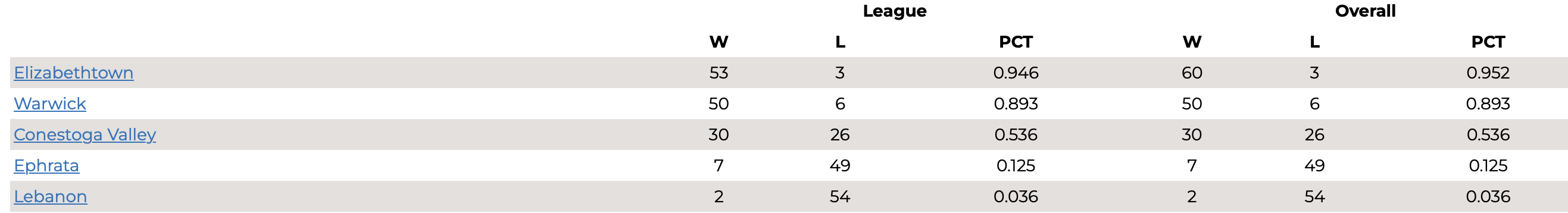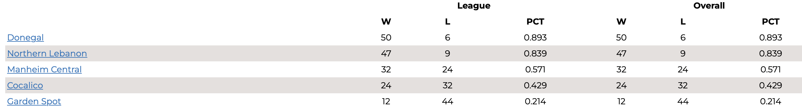 Below are the standings for all 4 Sections of the L-L League.