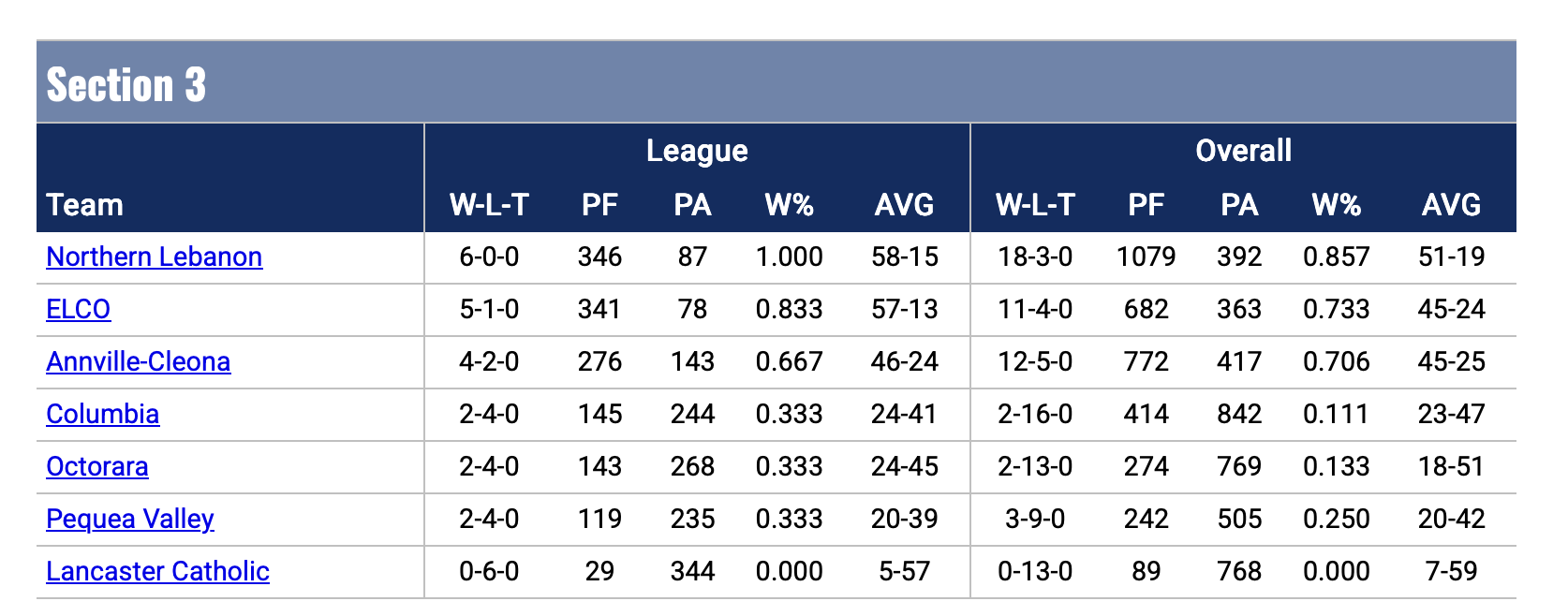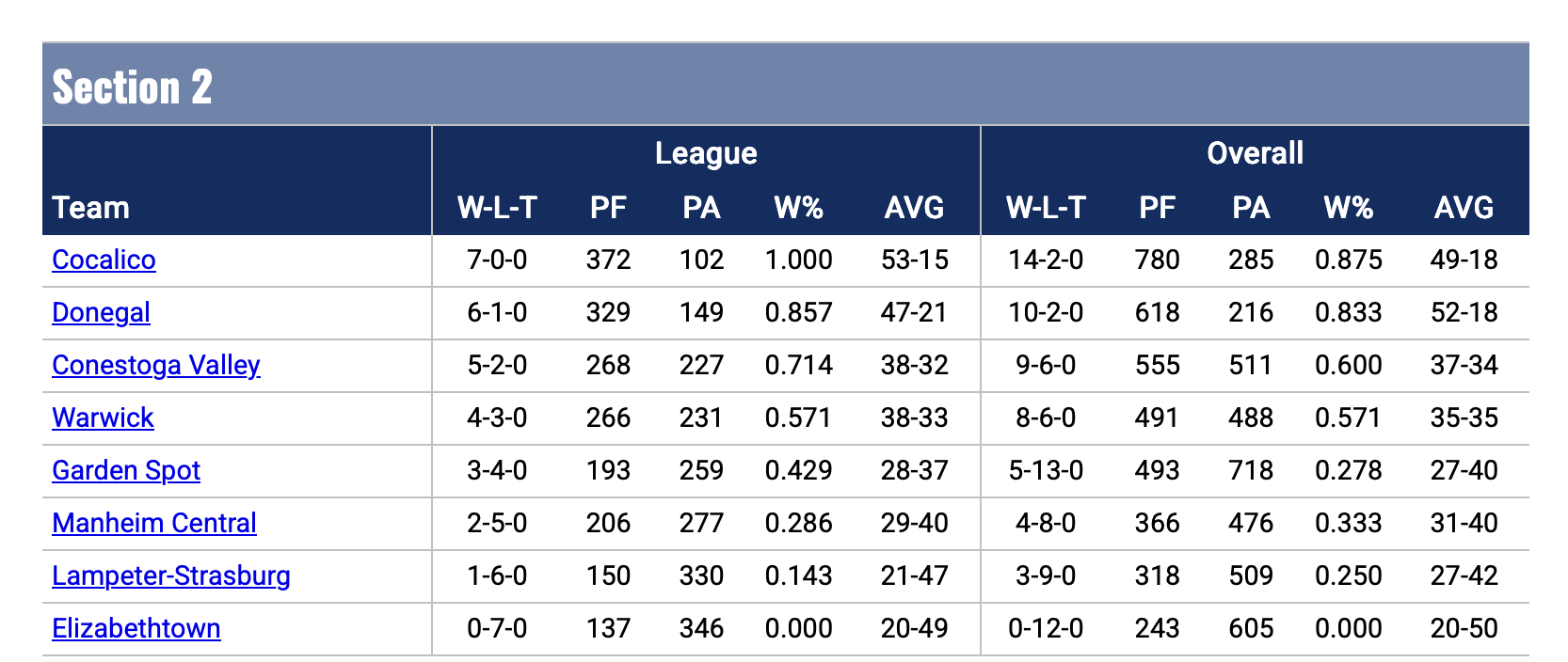 Team Standings: Conestoga Valley leads after the first day of the L-L League Championships.