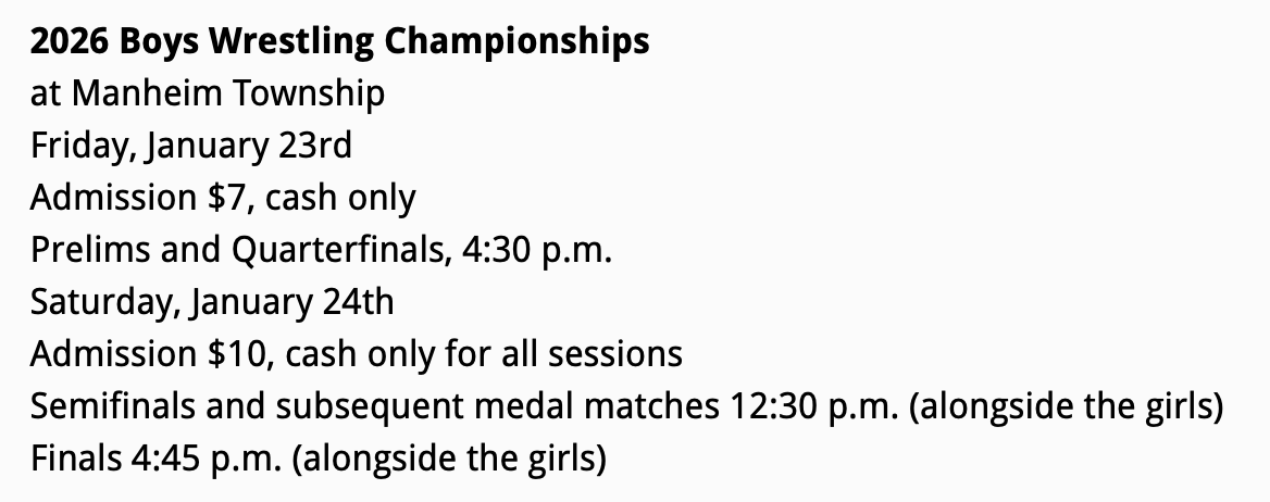 The Lancaster Lebanon Wretsling. Playoffs began tonight.
