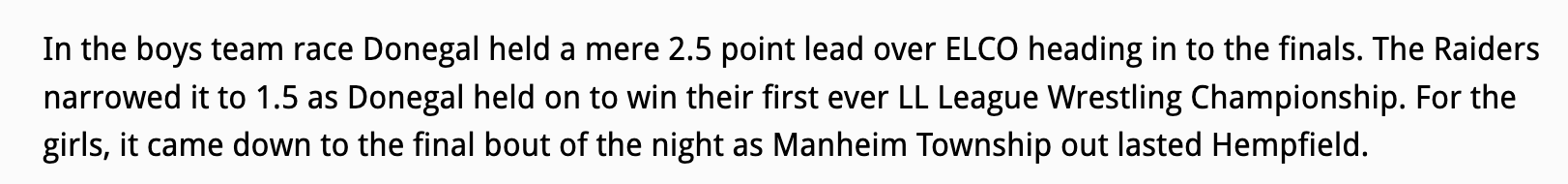 The Manheim Township Girls Wrestling team has won the Lancaster Lebanon Wrestling Playoffs.