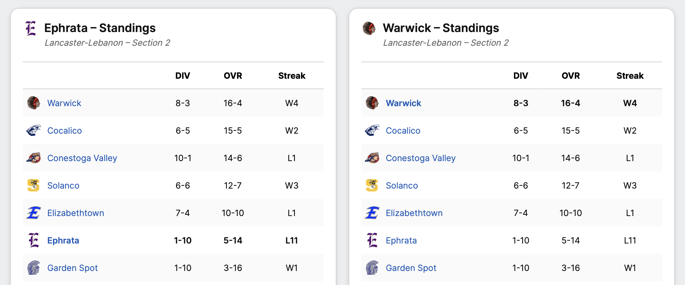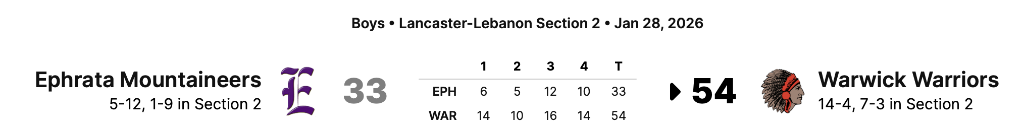 Warwick jumped out fast and never looked back, knocking off Ephrata 54–33.