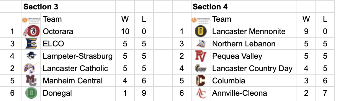 There’s a 3-way tie in Section 3 for the playoffs…and a 2-way tie in Section 1 for the playoffs.
