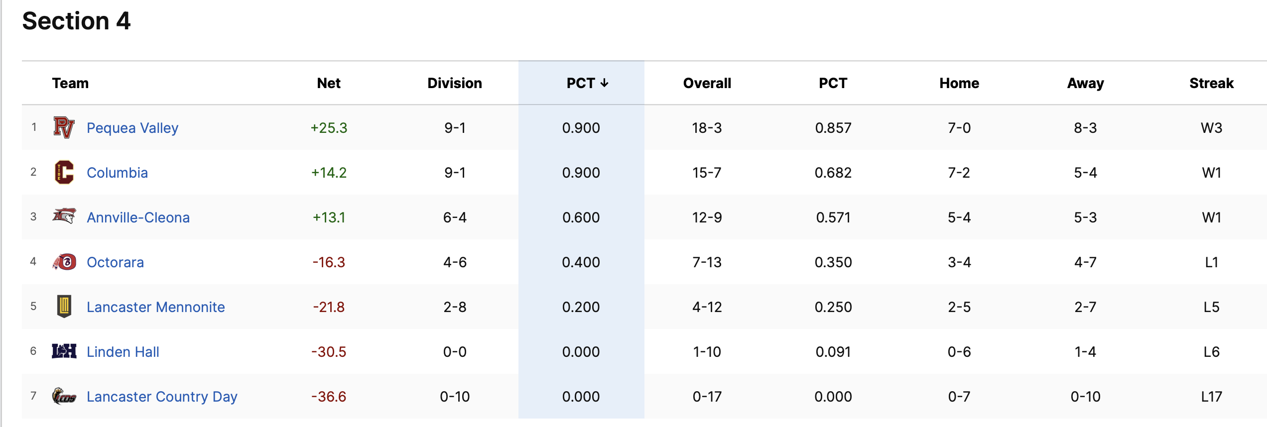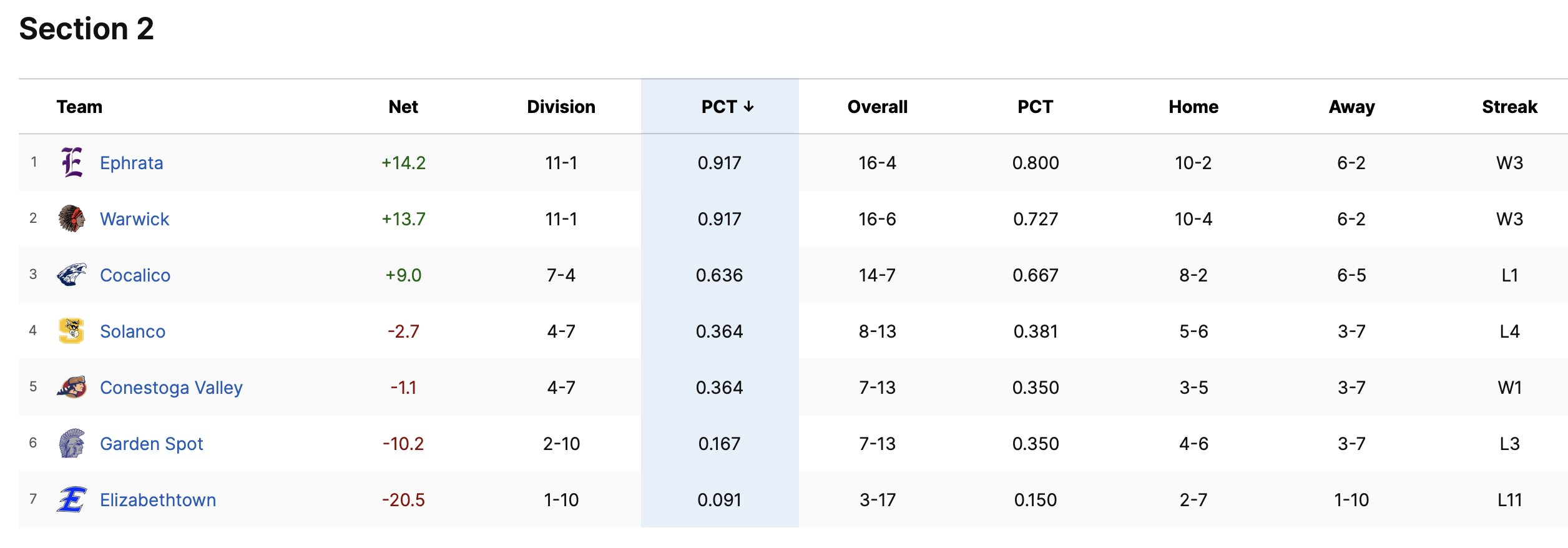 The first two teams in each section make it to the playoffs.