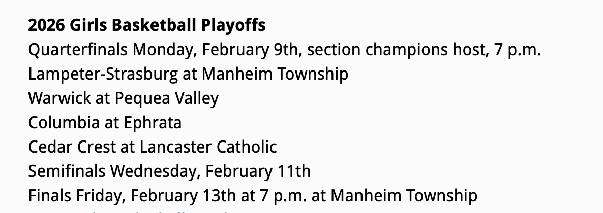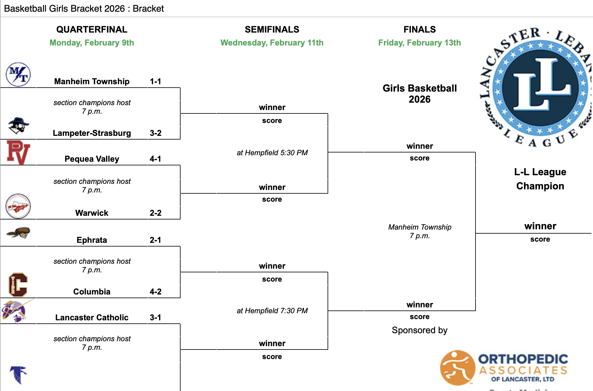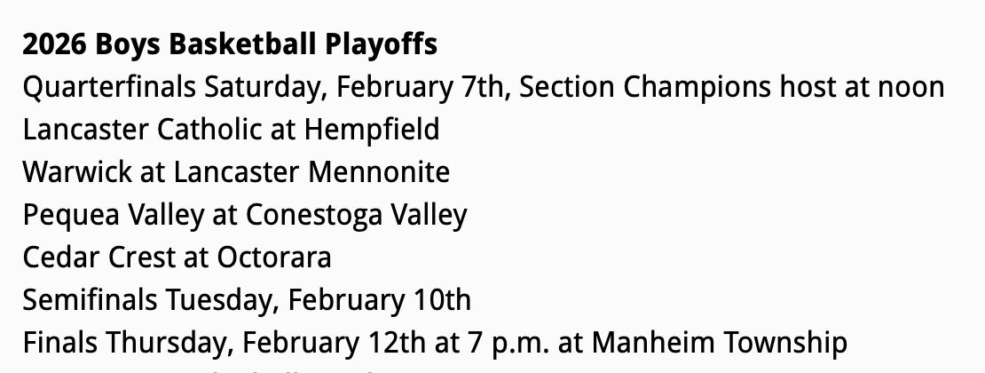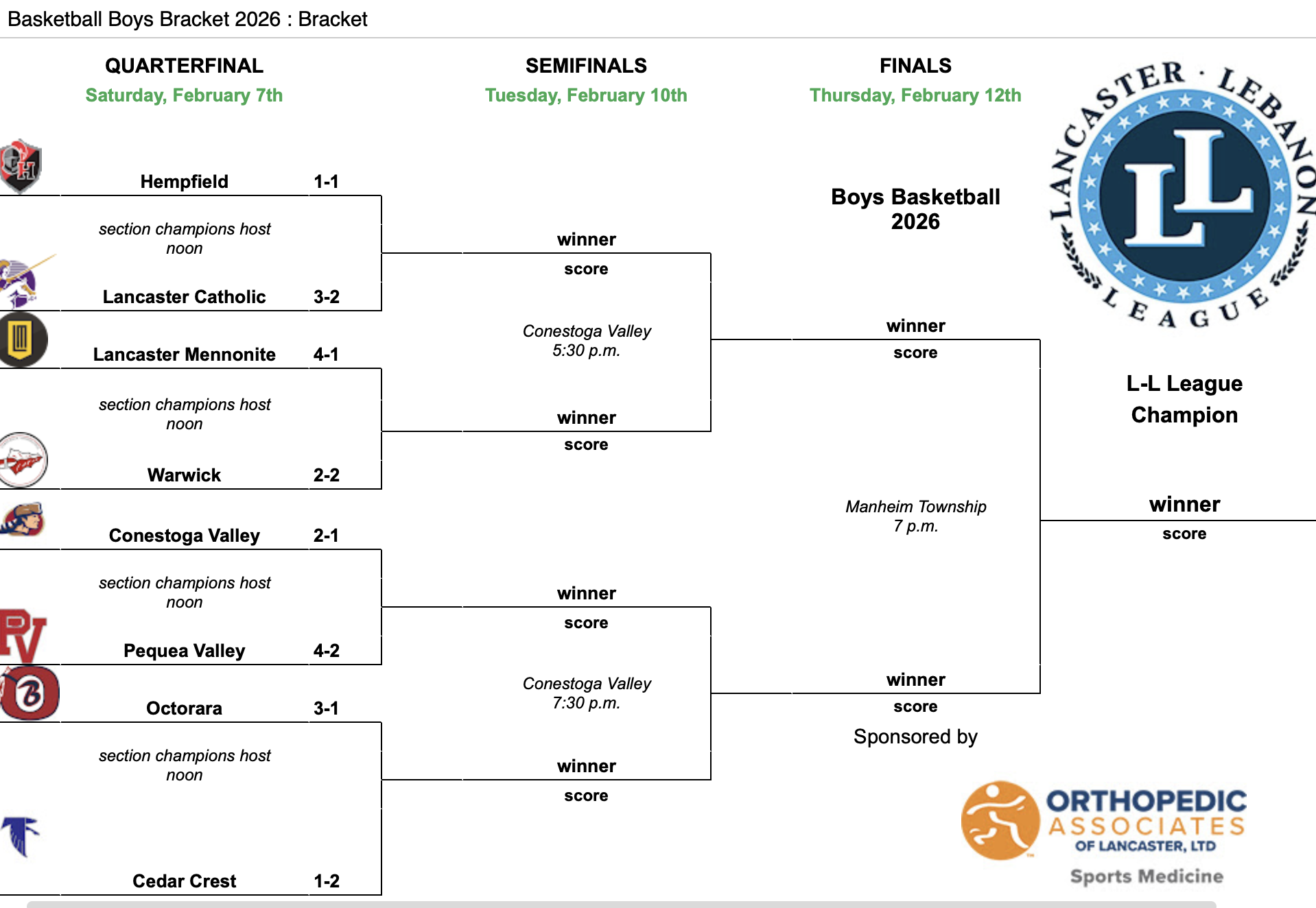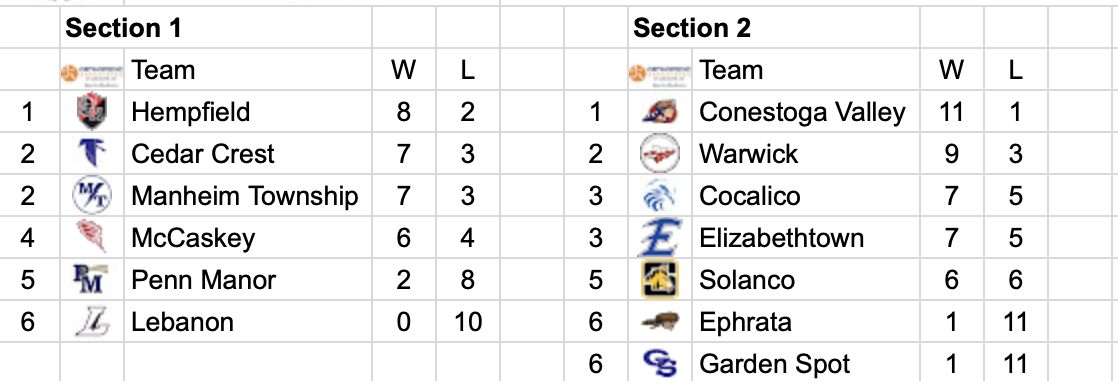 Below are the brackets and the final Lancaster Lebanon Standings for the 2026-’26 season.