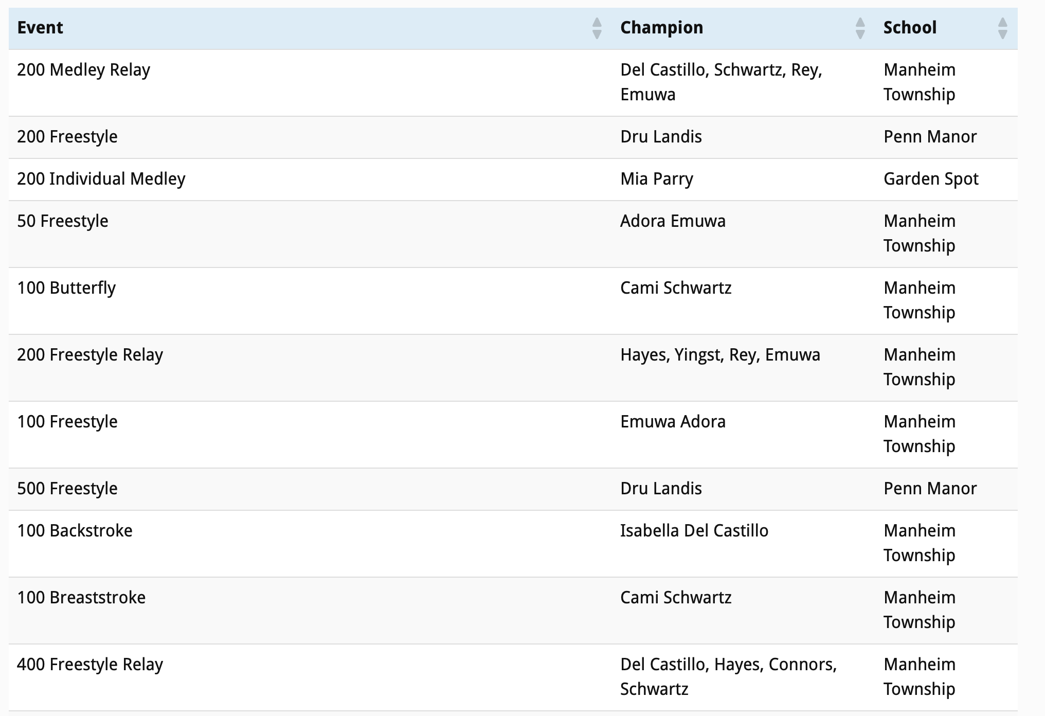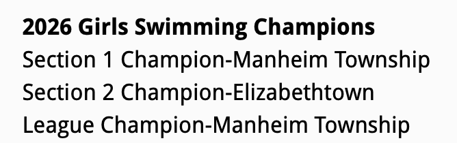 For the third year in a row the Manheim Township Girls have won the Swimming Championship in the Lancaster Lebanon League.