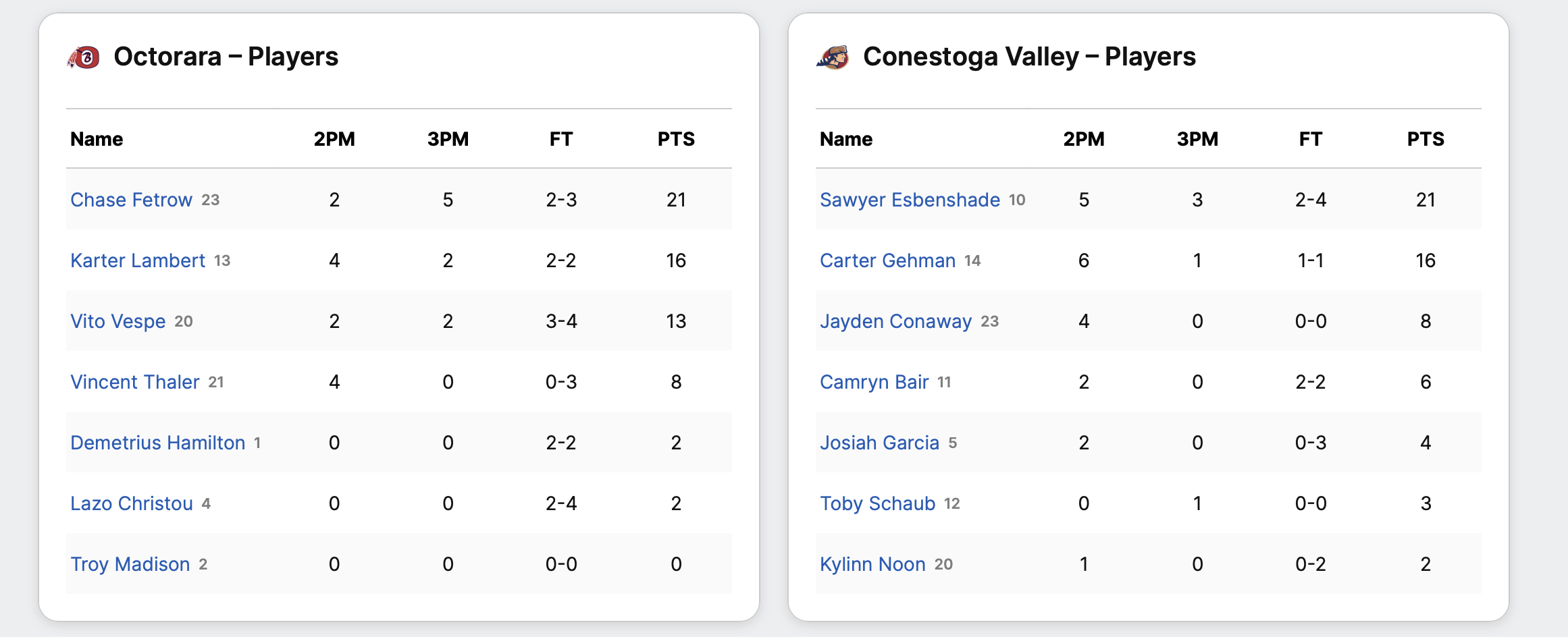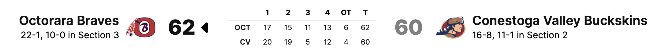 Octorara staged a 2nd half rally to beat Conestoga Valley 62-60 in OT & make their first L-L League Finals appearance.