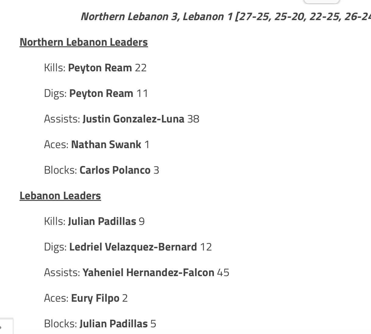 After leading Northern Lebanon boys volleyball’s 3-1 win over Lebanon at home on Thursday, April 9, the Vikings junior showed how his energy and vocality translate to action. Ream has put together several highlight games this season, and he added another with a 22-kill, 11-dig performance to deliver a tough win over the Vikings’ L-L Section 2 rival.