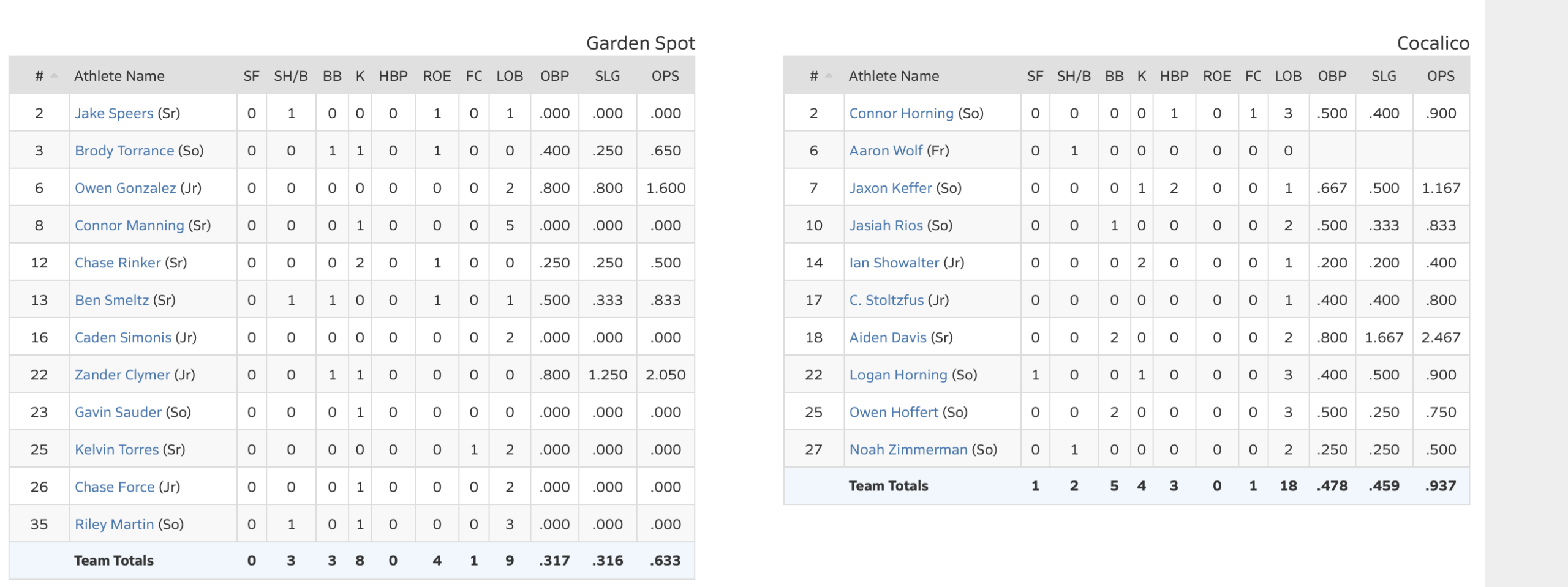Cocalico was getting hits left and right and finished the game having posted a batting average of .378. The last time their batting average was this high was back in April of 2025.